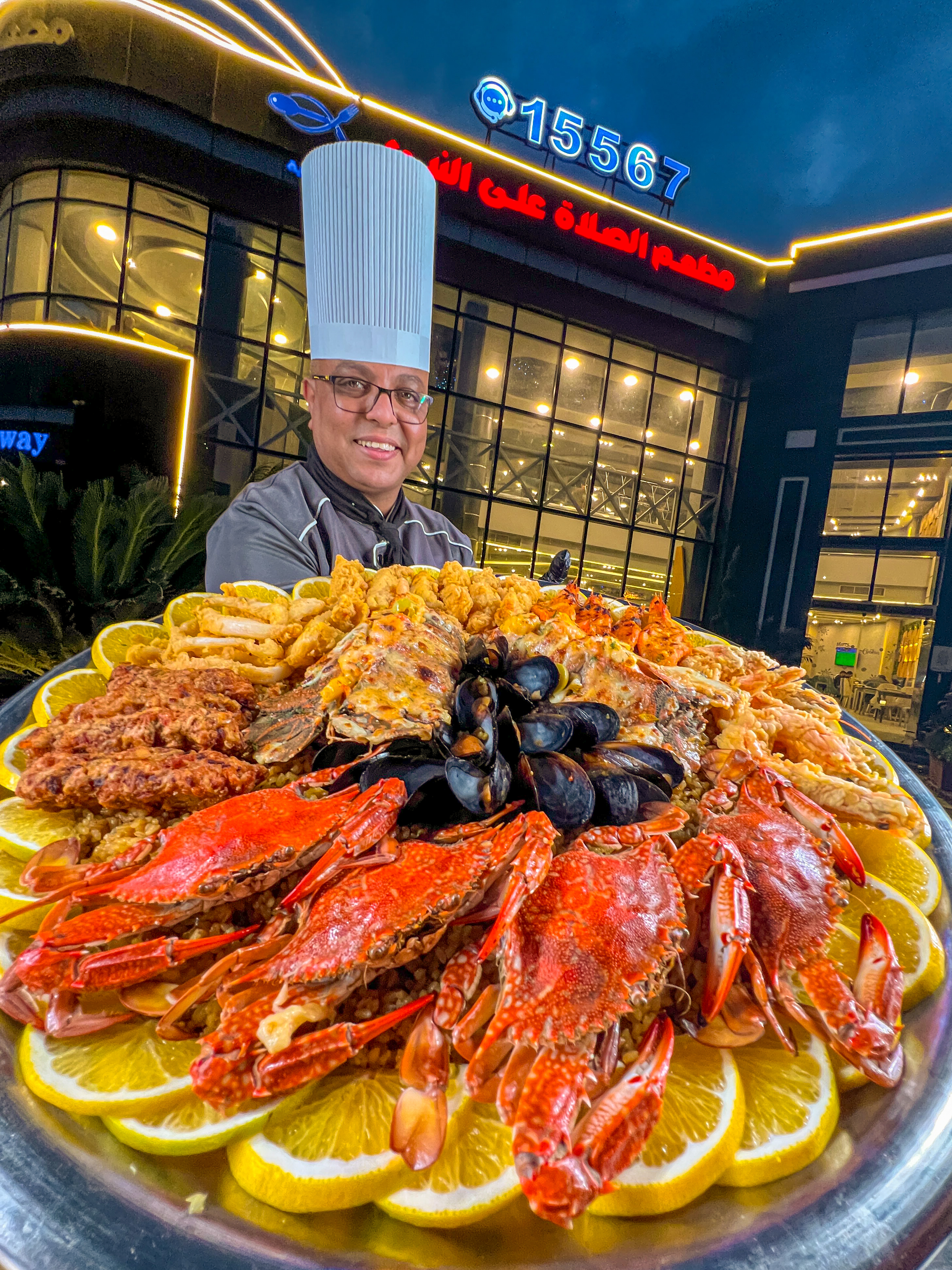 اكل نظيف وروعه والشيف هناك شاطر اوي بس محتاج اهتمام بالسلاطات وفي تنوع في أصناف السمك والجمبري والخدمة جيده جدا واسطاف محترم